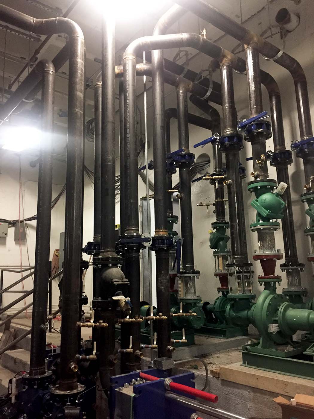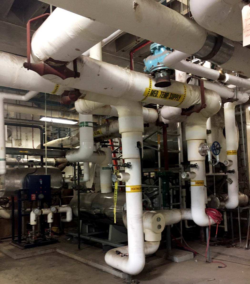 We designed a comprehensive retrofit that converted the existing high-temperature system to a modern, efficient low-temperature variable flow system. The new design provided improved efficiency while maintaining the ability to serve the existing building infrastructure.